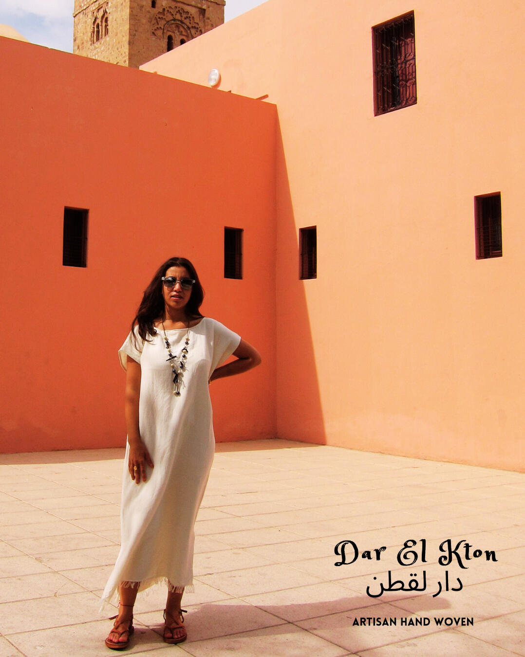 The journey of Dar El Kton started with Ahmed in Marrakech with a vision to revive and celebrate the traditional weaving techniques passed down through generations. Ahmed set out to create a brand that would honor these traditions while infusing them with a modern and archaic style. Each thread tells a story, each pattern holds a secret, and each garment is a unique piece of art.Dar El Kton's creations are a testament to the beauty and versatility of hand-woven cotton. The dresses and tops are not merely clothing; they are wearable art pieces that evoke a sense of timelessness. Each piece is meticulously crafted, showcasing the unique look of archaic style that sets Dar El Kton apart. The designs are a harmonious blend of the old and the new, combining traditional weaving techniques with modern cuts and silhouettes.The heart and soul of Dar El Kton lie in its community of weavers. These artisans, with their deft hands and keen eyes for detail, bring each design to life. The process begins with the careful selection of the finest cotton fibers, which are then dyed using natural, eco-friendly dyes. The weavers, guided by generations of knowledge, work their looms with precision and love, creating fabrics that are as soft as they are durable.Once the fabric is ready, it is transformed into stunning dresses and tops that exude a unique charm. The designs often feature elements inspired by ancient patterns, reimagined to suit the tastes of the modern wearer. Flowing dresses and tops with intricate cuts, each piece is a nod to the past while embracing the present.Dar El Kton's commitment to sustainability and ethical practices is unwavering. Every piece of clothing is made with respect for the environment and the people involved in its creation. By using natural dyes and hand-woven fabrics, the brand ensures that each garment is as kind to the earth as it is beautiful.The brand has garnered a loyal following, with customers drawn to the authenticity and craftsmanship that Dar El Kton embodies. Each dress and top carries the spirit of the weavers, the essence of the brand, and the vision of Ahmed. It’s a brand that not only offers unique clothing but also tells a story—a story of heritage, passion, and the timeless art of weaving.As Dar El Kton continues to grow, it remains rooted in its origins, cherishing the traditions that inspired its creation while looking forward to a future filled with endless possibilities. For those who wear Dar El Kton, it’s more than just clothing; it’s a journey back in time, a connection to a rich cultural heritage, and a celebration of the artistry that defines the House of Cotton.